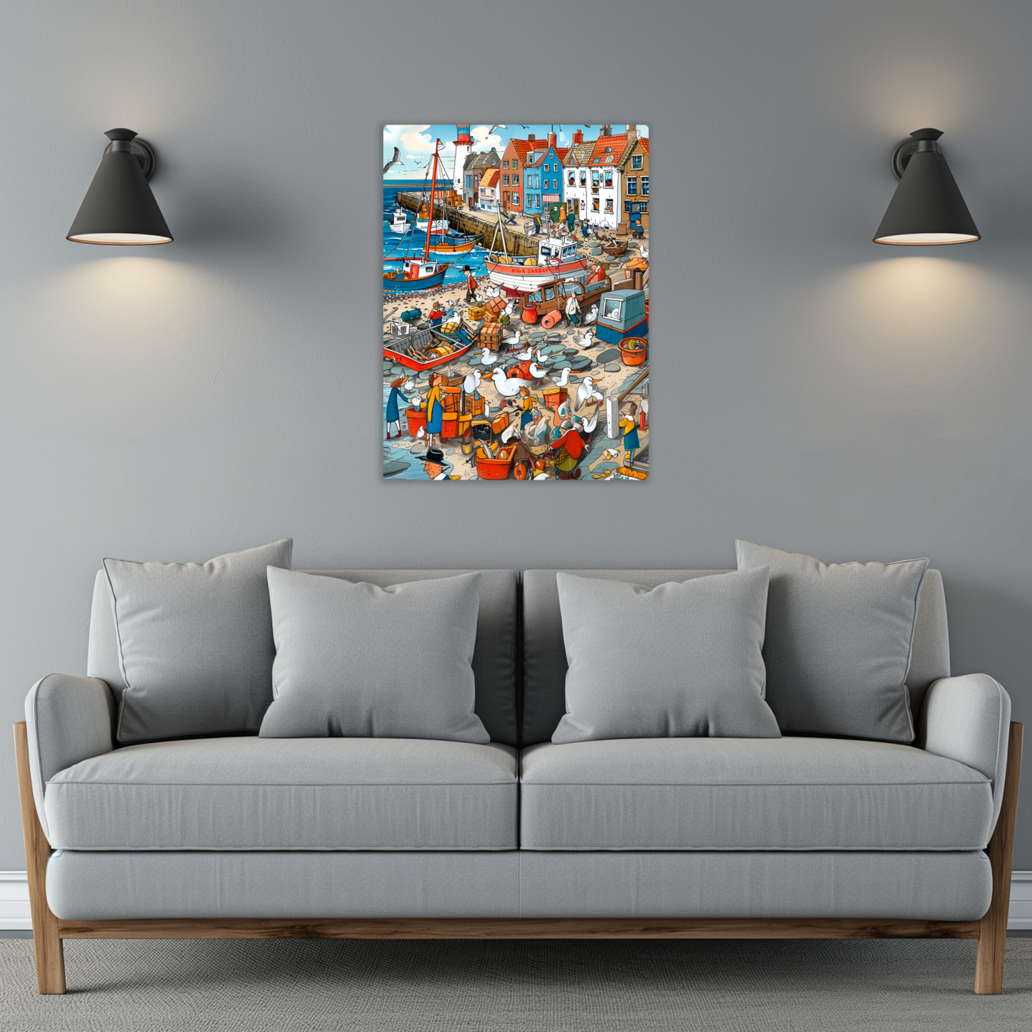 Seaside Harbor Bustle Premium Portrait Aluminum Prints